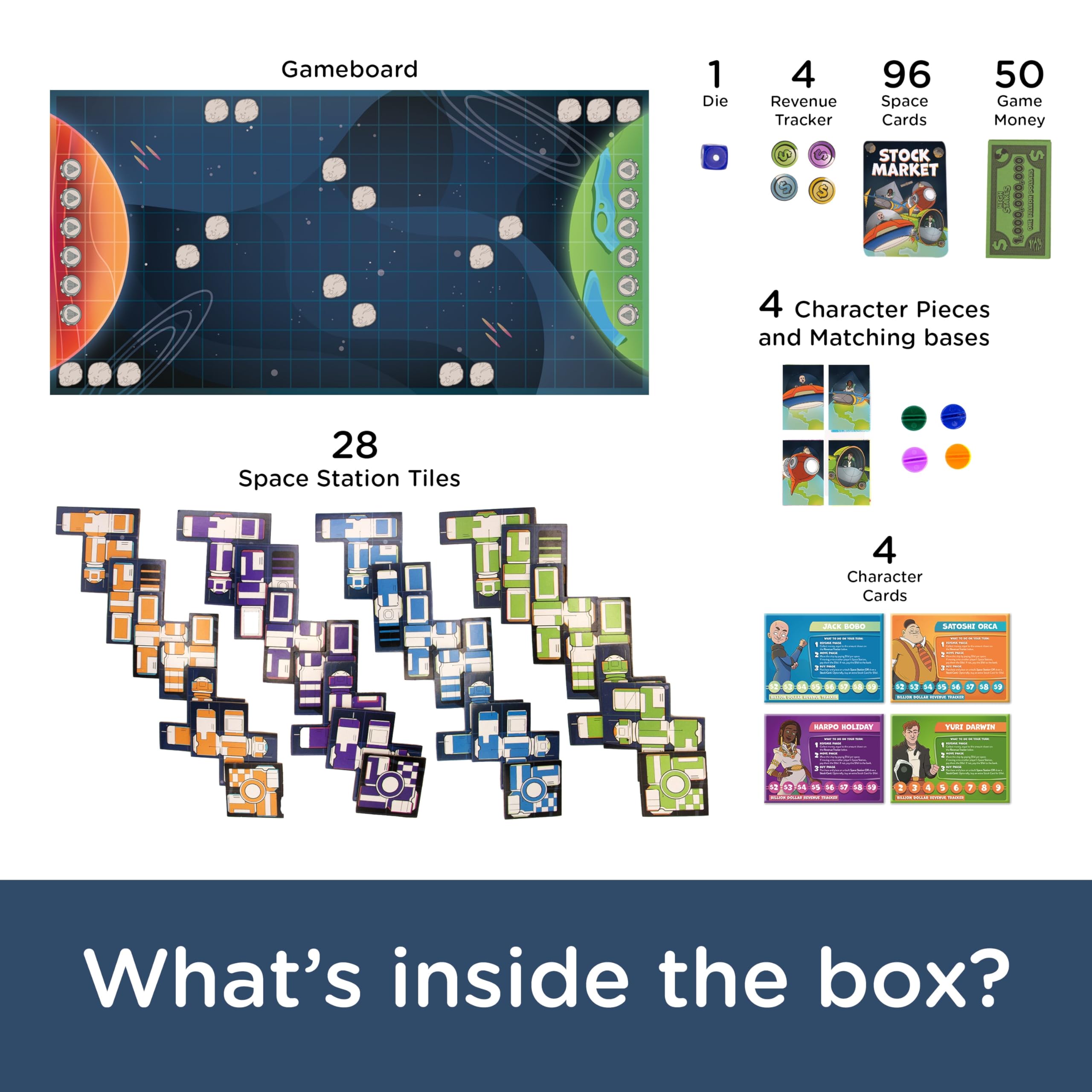 - BUILD SPACE STATIONS, PLAY THE STOCK MARKET & DEAL WITH REAL STUFF LIKE THE IRS IN SPACE AND OUTSTRATEGIZE your opponents with this incredibly fun Family board game. For 2-4 players, ages 8 and up