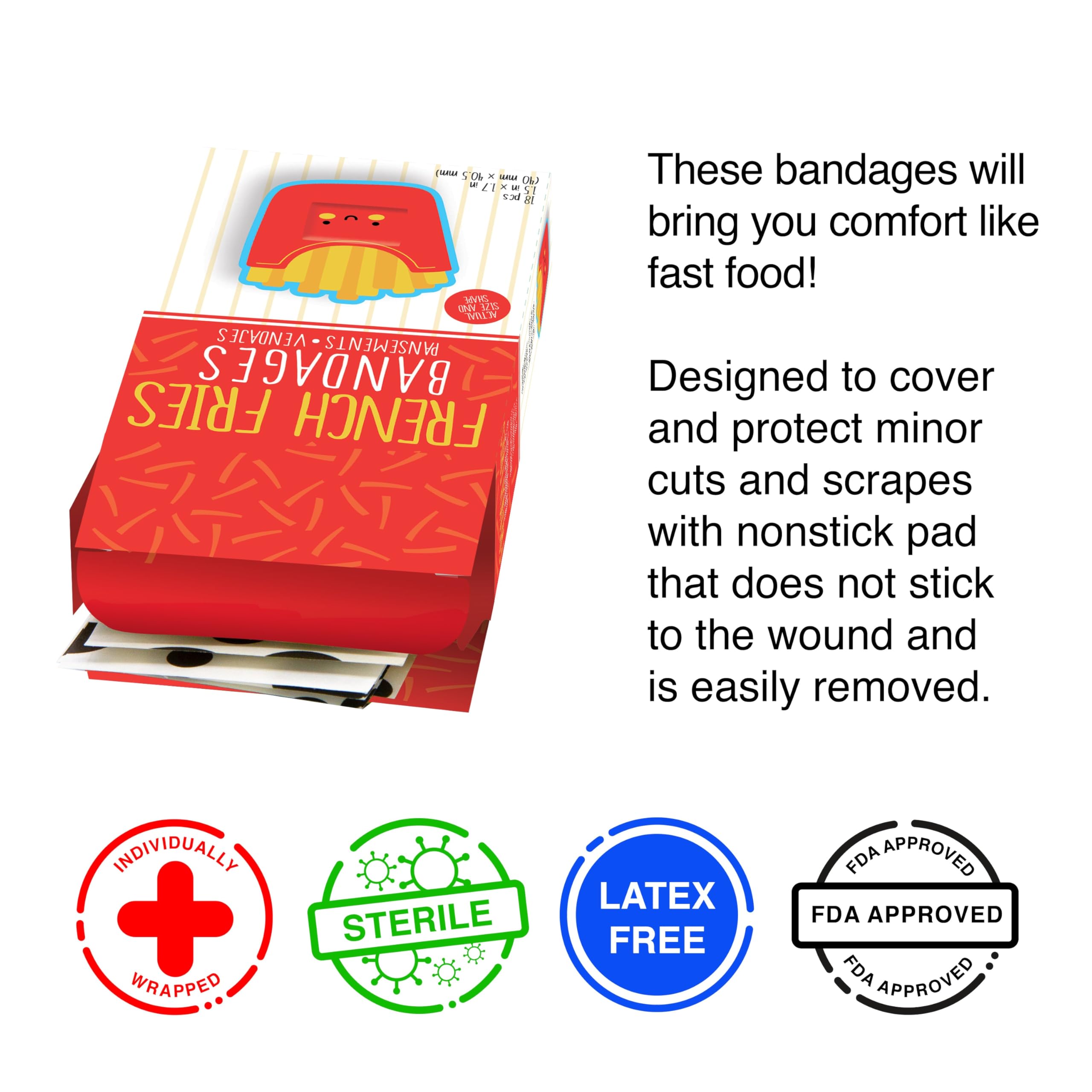 - 18 SELF-ADHESIVE BANDAGES: Kids and the young at heart looking to turn that frown upside down with the cutest bandages ever!