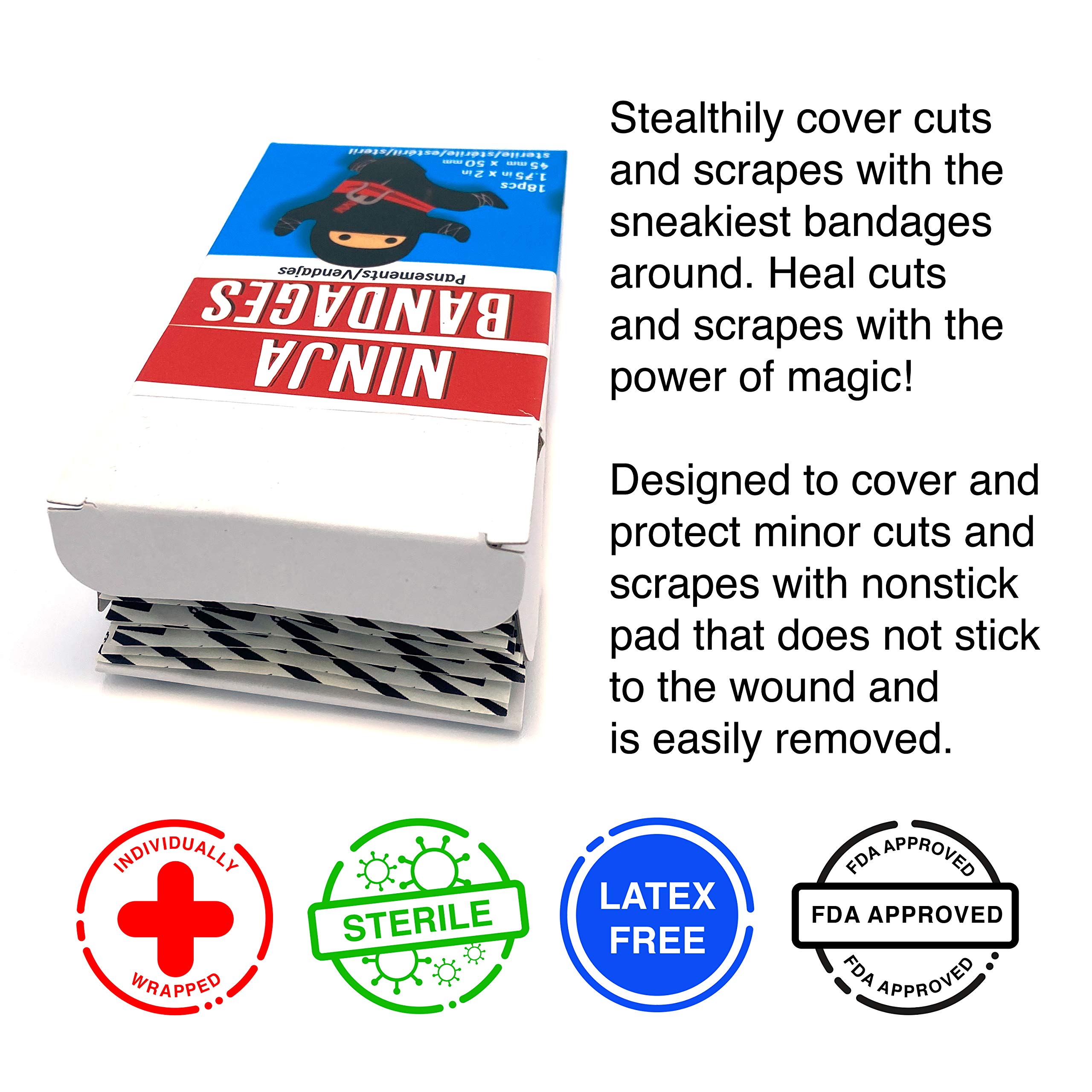 GAMAGO Ninja Bandages for Kids & Kidults - Set of 18 Individually Wrapped Self Adhesive Bandages - Sterile, Latex-Free & Easily Removable - Funny Gift & First Aid Addition
