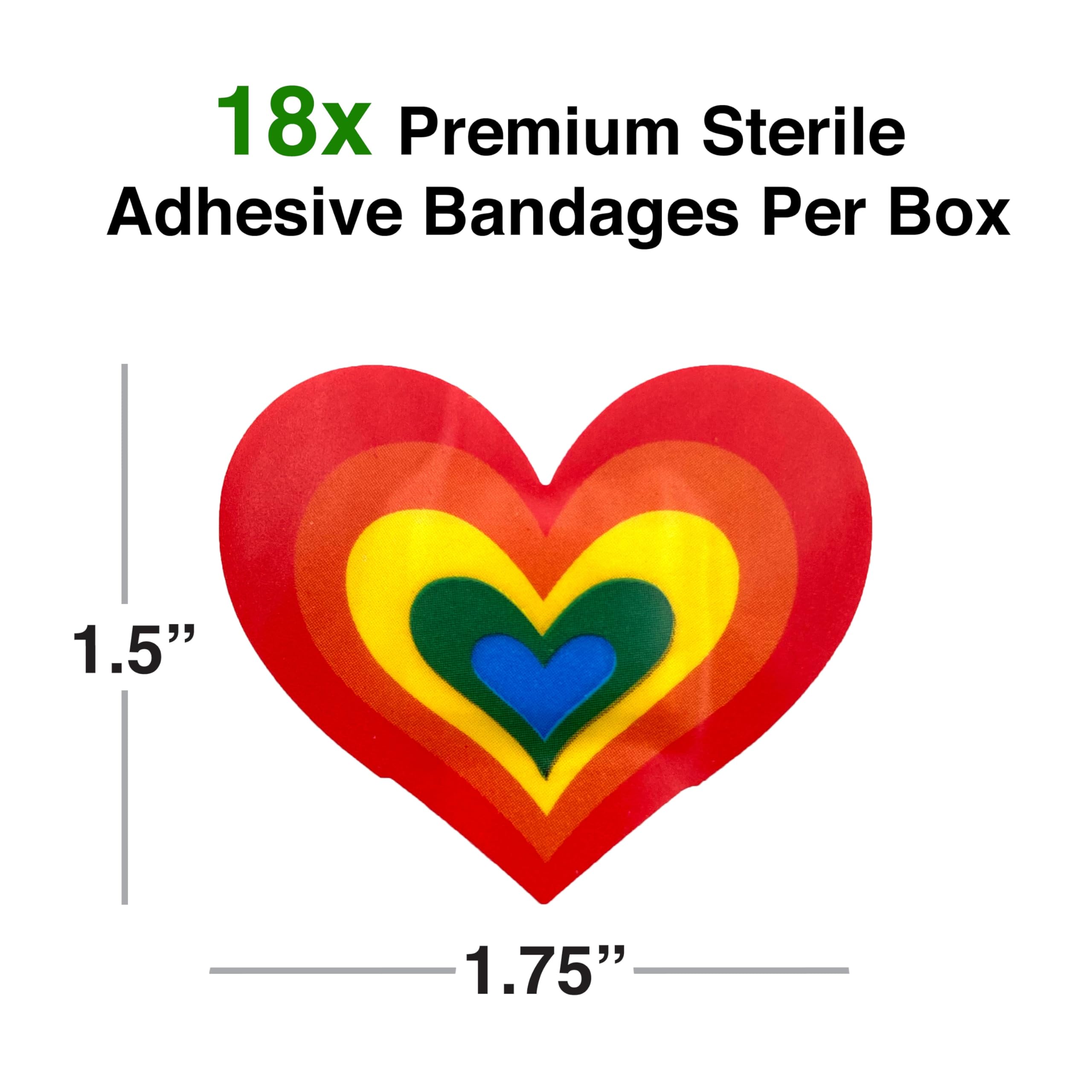 - 18x SELF-ADHESIVE BANDAGES: Heal what hurts and show the world your true colors with these Rainbow Heart Bandages!